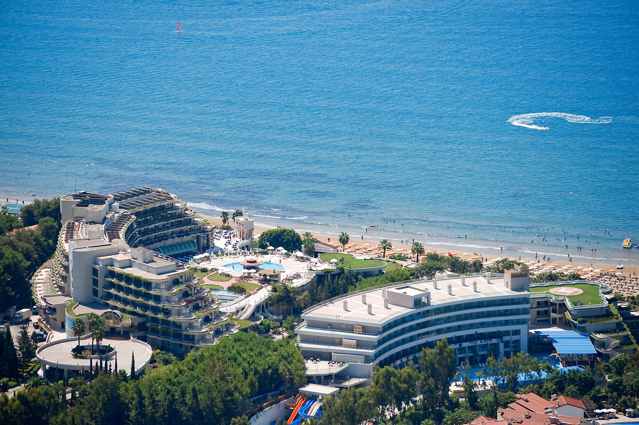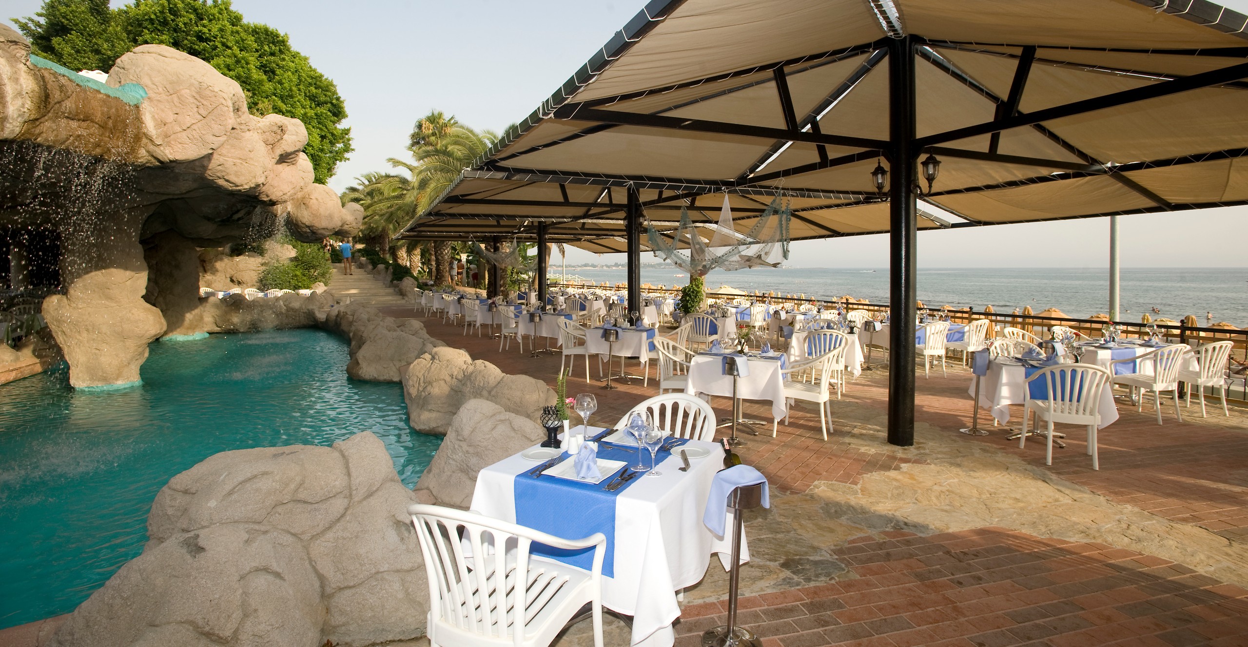 Tesisin denize uzaklığı 50 - 100 metre arasındadır. 50 m uzunluğundaki sahile sahip tesisin kendine ait iskelesi vardır. Tesisin kendine özel kum plajı bulunmaktadır. Tesis 3 adet ala carte restaurant, 3 adet açık restaurant, 4 adet kapalı restaurant ile misafirlere özel hizmet sunmaktadır.